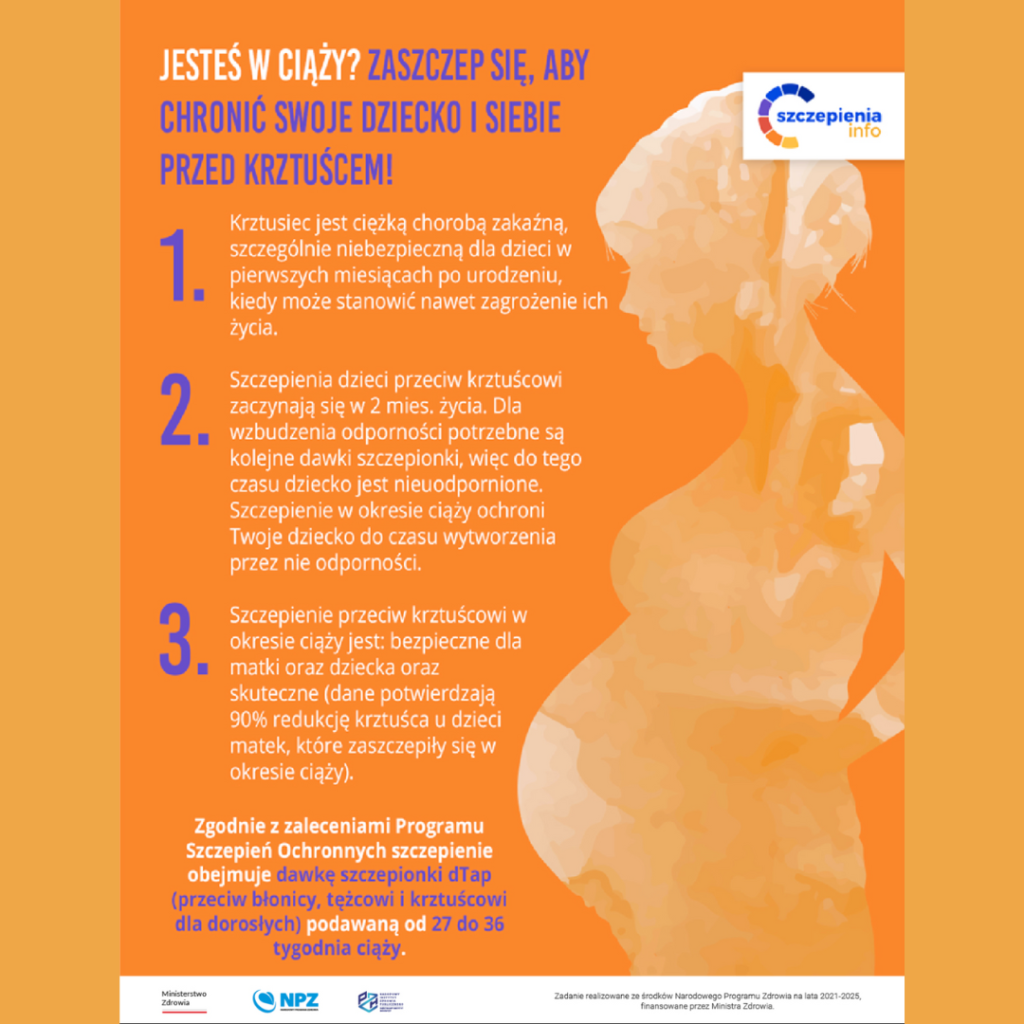 → Szczepienia kobiet w ciąży, osób z ich otoczenia oraz pracowników oddziałów pediatrycznych zmniejszają ryzyko zachorowania niemowląt.