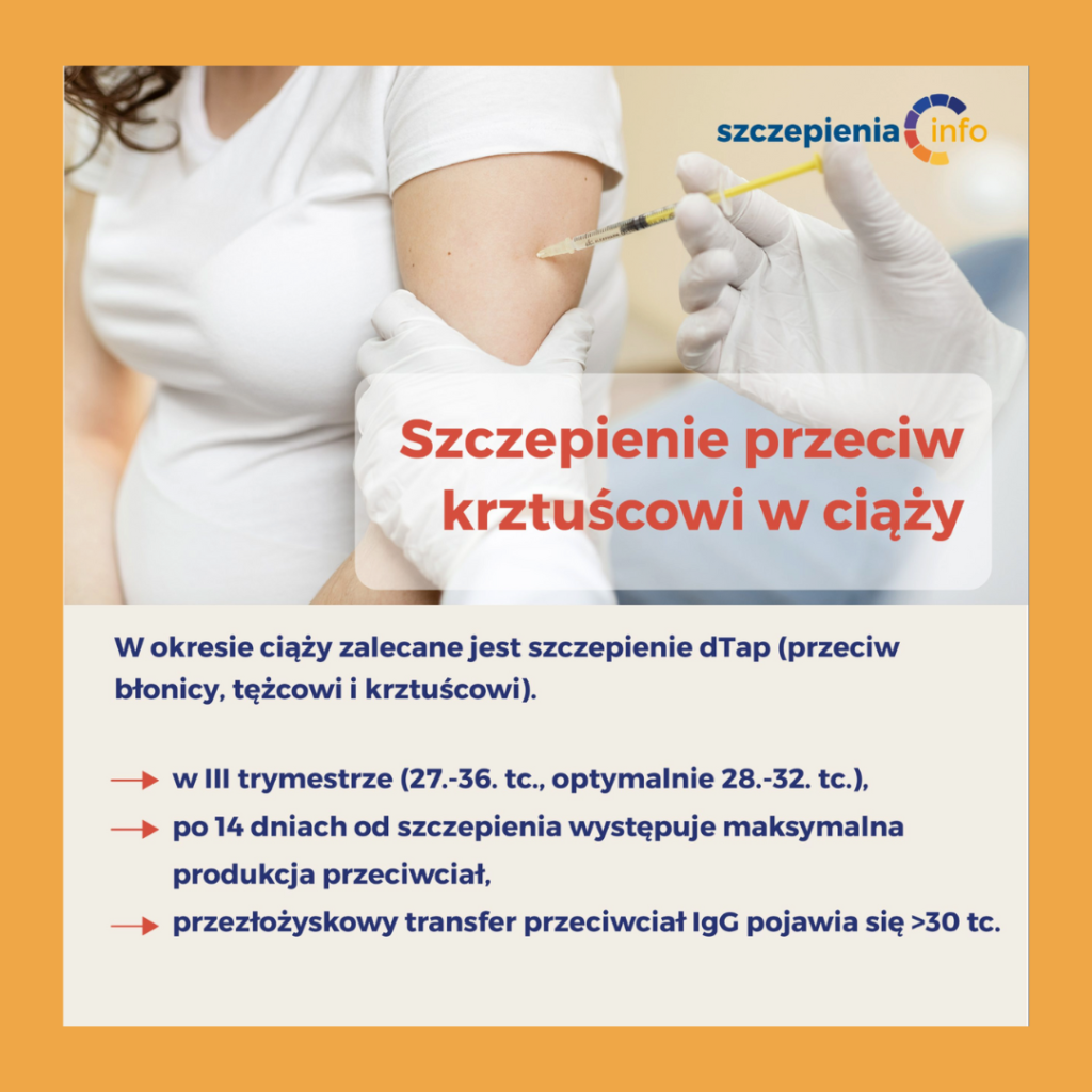 Szczepienie ciężarnych przeciw krztuścowi zmniejsza ryzyko zachorowania u niemowląt w pierwszych miesiącach życia, kiedy ryzyko ciężkiego i powikłanego przebiegu choroby, a także zgonu jest największe. Szczepienia kobiet w ciąży przeciw krztuścowi są idealną strategią pozwalającą zrealizować jednocześnie 2 cele: