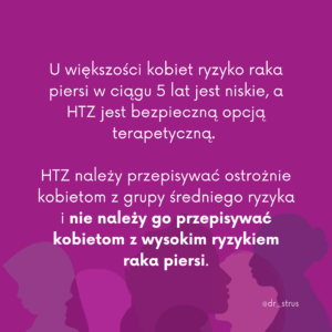 ⛔ HTZ należy przepisywać ostrożnie kobietom z grupy średniego ryzyka i nie należy go przepisywać kobietom z wysokim ryzykiem raka piersi.