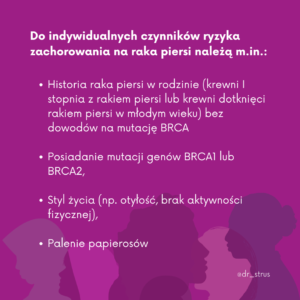 🎀 Indywidualne czynniki ryzyka zachorowania na raka piersi to m.in.: