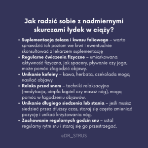 Jeśli skurcze lub zespół niespokojnych nóg są bardzo uciążliwe, warto skonsultować się z lekarzem. To lekarz zaleci badania, które pozwolą na odpowiednią suplementację i/lub wprowadzenie odpowiedniego leczenia.