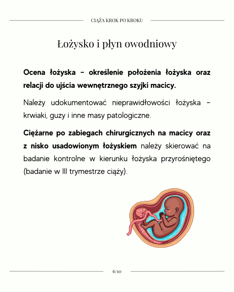 • lokalizacja i struktura łożyska oraz jego relacja do ujścia wewnętrznego szyjki macicy,